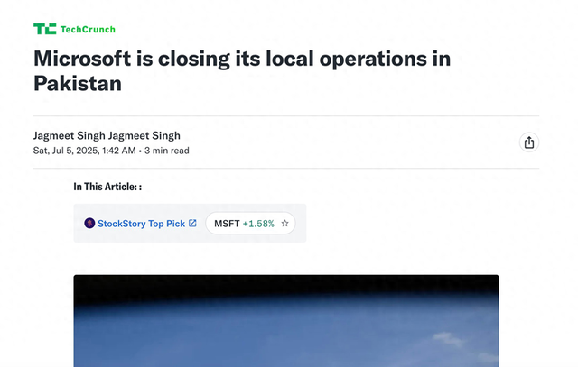 【环球网科技综合报道】7月5日消息,据海外科技媒体TechCrunch报道,微软将关闭其在巴基斯坦的业务,标志着其在巴基斯坦 25 年业务的结束。