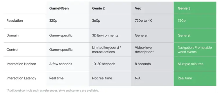 Anthropic的Claude在编程上的能力真的在“遥遥领先”,并且它也从中获得了好处并且打算把这个优势继续巩固下去;OpenAI则处于前所未有的动荡期,它投入更多精力来建设一整套生态系统,以维持住其仍然存在但也并不厚的先发优势,同时寄希望于等待GPT-5的成熟,这一套组合拳下来,稳住军心稳住估值把故事讲下去;而Google,在核心LLM能力追上第一梯队后,显然又开始扮演起“下一个Transformer时刻”的缔造者角色。从VEO3到Genie 3,它在投入别人没法或不愿投入的资源,去赌下一个范式的突破。