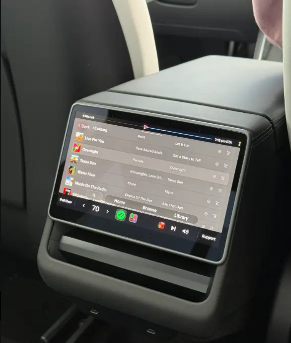 其三,就是特斯拉的Robotaxi会提供相对更好的乘车体验,比如乘客能自行选择车厢温度和音乐,增设的后屏幕还能选择各种游戏或YouTube视频。