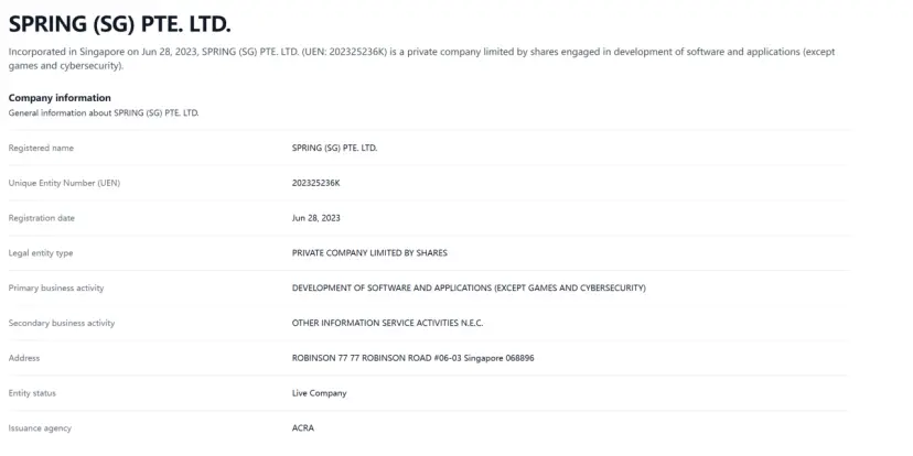 根据新加坡公司注册处(ACRA)的公开信息,SPRING成立于2023年6月28日,可见字节早就猜到现如今美国AI公司对华收紧的局面。而这个时间点,也与全球生成式AI技术爆发式增长的时间线相吻合。